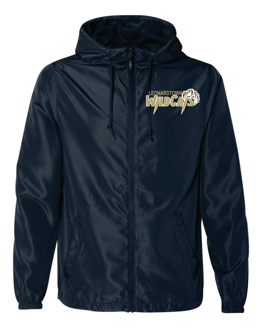 Leonardtown Wildcats Lightweight Rain Resistance Jacket - S / Navy / Wildcats is backordered and will ship as soon as it is back in stock.